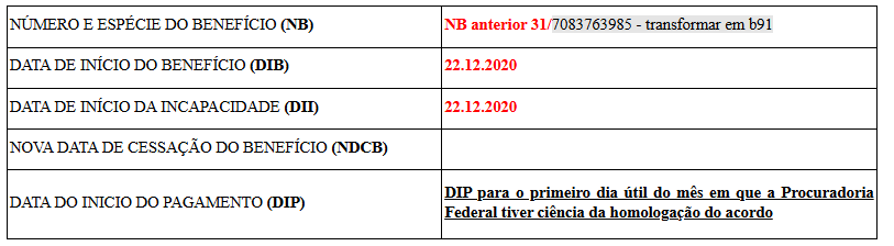Benefício concedido desde a cessação do auxílio-doença isto em 22/12/2020, com o valor dos atrasados no importe de R$ 30.172,42.